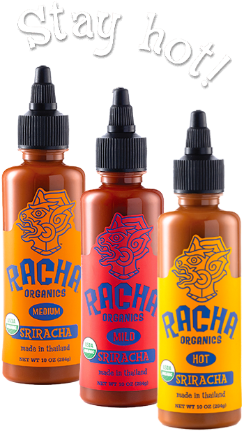 We are a team of Thai and American sauce lovers, united by our dedication to organic farming and passion for Thailand's culture and cuisine. We created our Sriracha sauces to share not just Thai flavors, but also the Thai values of respect, family, and gratitude. We encourage you to enjoy Racha around a table shared with friends and loved ones.